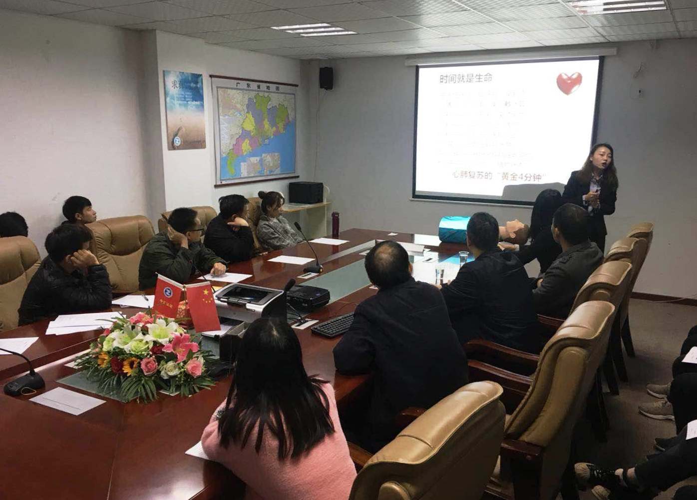 为积极响应党十九大提出的“实施健康中国战略”号召,关心关爱职工身心健康,进一步增强职工应急救护意识,提升自救互救技能,今天上午,我司请来了广谱健康中心的专业讲师,为全员讲授“常见职业病伤害的预防及改善”、“突发工伤意外事件应急处理”、“职场人心理健康”、“自然灾害逃生知识”、“公共场合突发事件应对”、“现场急救技术”等内容的专题讲座。