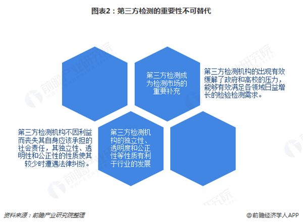 第三方检测机构的自身特性决定了其具备其他机构所不具备的优势:1)第三方检测机构具有专业、值得信赖的、公正、客观等优势,受其他相关的部门或者其他因素的影响小,能够帮助政府摆脱“信任危机”;2)专业的第三方检测机构具备专业的管理经验,拥有相应的检测资质和设备,能够更好地提高检验检测的准确性。