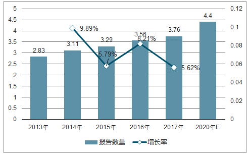 近年来,我国检测行业蓬勃发展,市场规模不断扩大。根据统计数据,截至2017年末,我国检测机构为36327家,较2016年末增长9.3%;2014年至2017年,检测行业对外出具的报告数量分别为3.11亿份、3.29亿份、3.76亿份,逐年增长,同时收入持续实现两位数高增长。预计2020年检验检测行业收入将达3000亿元,对外出具检测服务报告数量达4.4亿份,仍将保持强劲增长趋势。