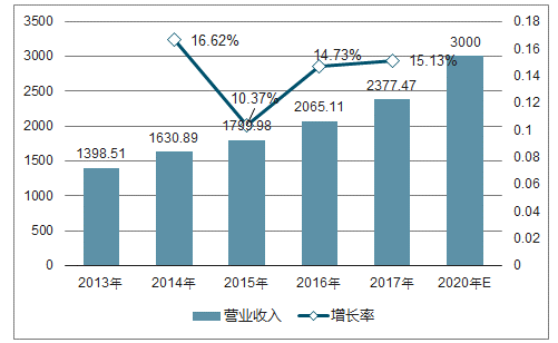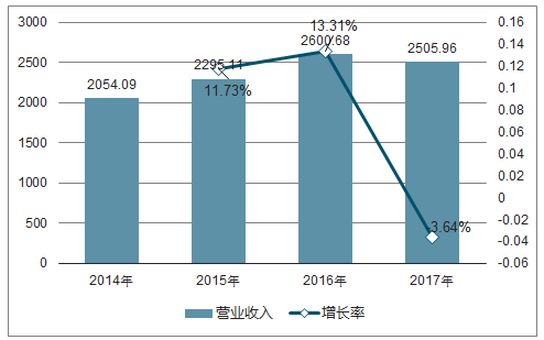 经过近30年的建设与发展,我国检测分析仪器已经初步形成产品种类较齐全,且具有一定生产规模和开发能力的产业体系。目前,我国检测分析仪器行业正处于快速发展阶段。根据统计数据,2017年检测分析仪器行业收入规模达2505.96亿元,2014年至2016年检测分析仪器行业市场规模同比均保持两位数增长。