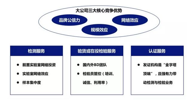 第三方检测机构的立基之本就是自身的公信力,其次就是以专业技术与优质服务相结合的客户体验。因此我们注意到全球Top 10 TIC公司都是有着网络化的服务半径,业务模式由单一转让复合化,给客户提供一站式的服务。这样一个庞大且专业的检测“帝国”靠自己一砖一瓦的修葺,时间成本是最 大的选择。因此靠快速“联姻”和专业团队的投后整合来实现“帝国”伟业。当然,整合风险也是“联姻”成败的关键,这个话题咱们以后再深入讨论。