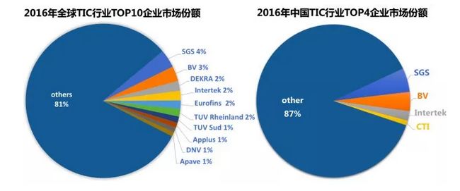 长尾市场结构导致全球Top 10 TIC公司合计市场份额不超过20%。TIC行业的高度碎片化形成了众多千万美元级别的细分市场龙头,并购整合是增加市场份额的主要方式。