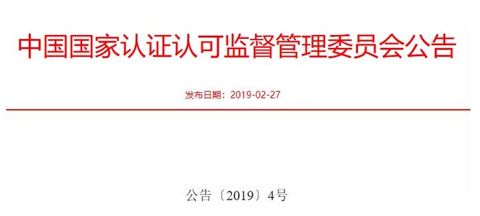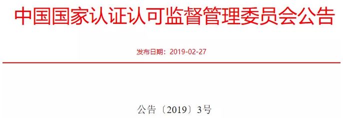 27日,国家认监委发出通知,对《内地与香港关于建立更紧密经贸关系的安排》、《内地与澳门关于建立更紧密经贸关系的安排》中检测认证相关条款进行了修正,就强制性产品认证(CCC)领域跨境服务开放措施相关条款做出了修改,修改后的条款将于2019年3月1日起实施。