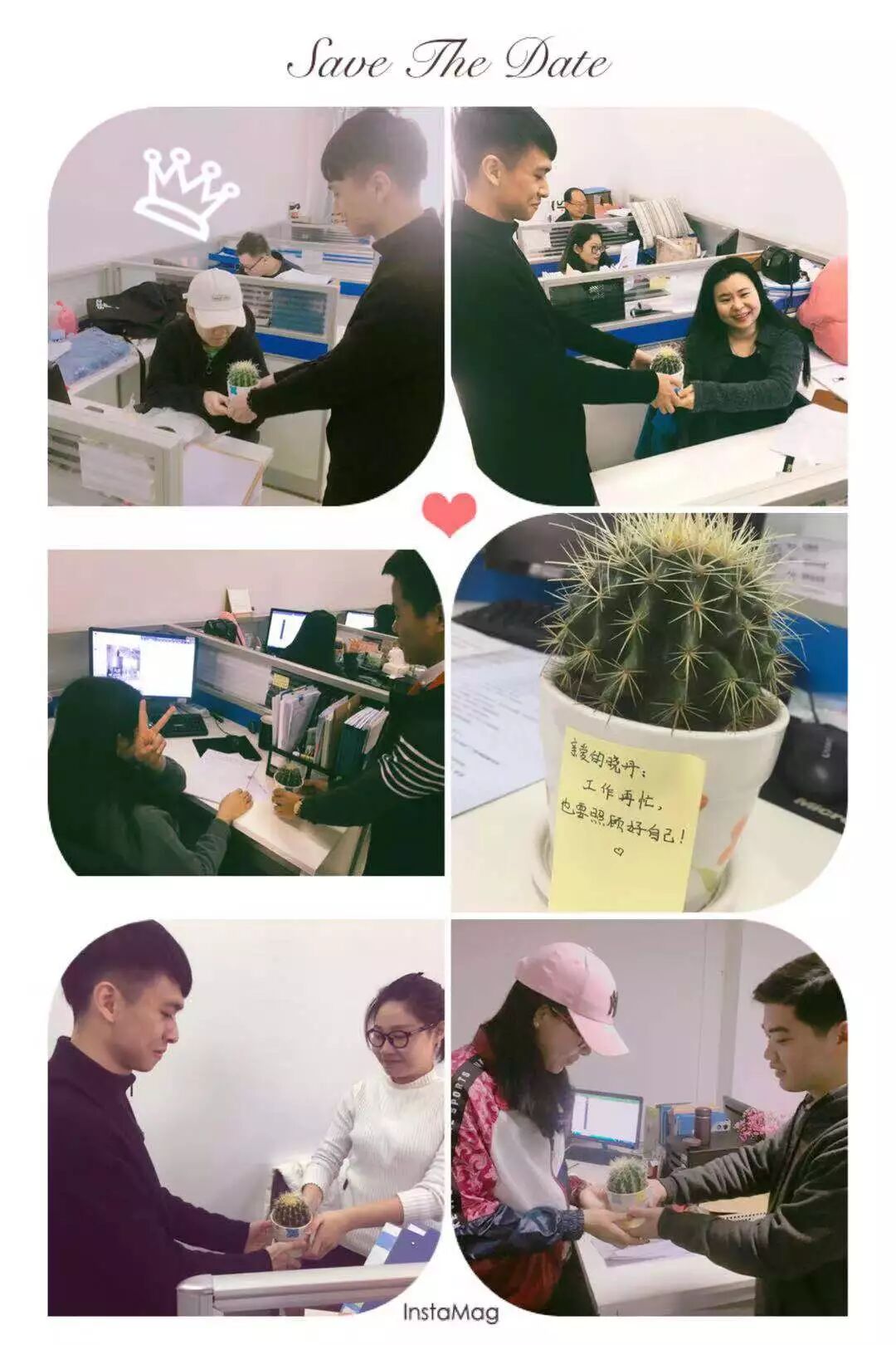 一早办公室已人潮攒动,原来是男同胞们正忙碌着给公司全体女员工派发节日礼物。他们手中拿的是小小的仙人球盆栽,这份绿色植物既是中汇对员工健康的守护,也是中汇对员工始终如一的关爱,同时它也是中汇顽强拼搏的生命力的象征!