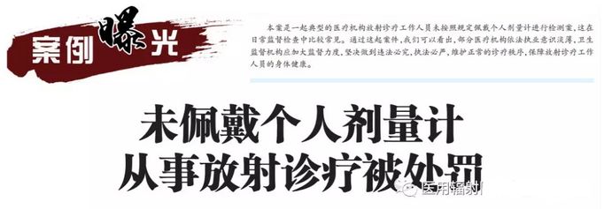 本案是一起典型的医疗机构放射诊疗工作人员未按照规定佩戴个人剂量计进行检测案,这在日常监督检查中比较常见。通过这起案件,我们可以看出,部分医疗机构依法执业意识淡薄,卫生监督机构应加大监督力度,坚决做到违法必究,执法必严,维护正常的诊疗秩序,保障放射诊疗工作人员的身体健康。