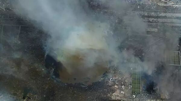 3月22日早晨六时左右,江苏响水,事发现场核心区。 澎湃新闻记者 顾一帆 图