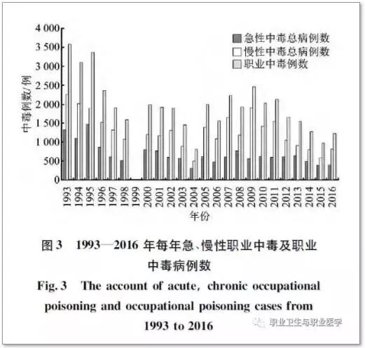 每年职业中毒病例占据职业病例3.7%~ 4.1%, 是除尘肺病外发生次数最多的职业病;