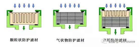 过滤式呼吸防护用品(RPE)分为防护气状危害物、颗粒状危害物、或二者都可以(防尘、防毒兼用)。颗粒状物防护滤材大多以纤维编织折叠而成,可借助机械加上静电作用滤除颗粒状物;气状物防护滤材则是由活性碳等物质制成,再配以特殊化学物质,对特定气状物具反应吸收功能;兼用式呼吸防护用品所使用的滤材则是将具粒状物过滤与气状物吸收功能的滤材前后串接而成(如图1 )。