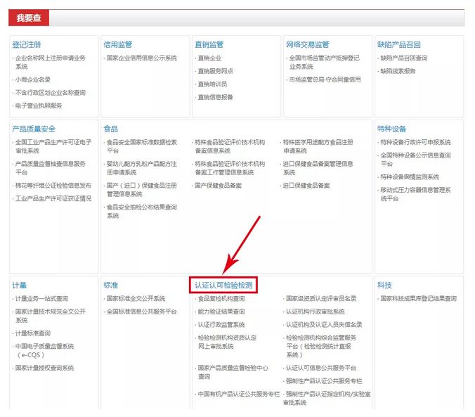 2、在“我要查”页面,找到“认证认可检验检测”