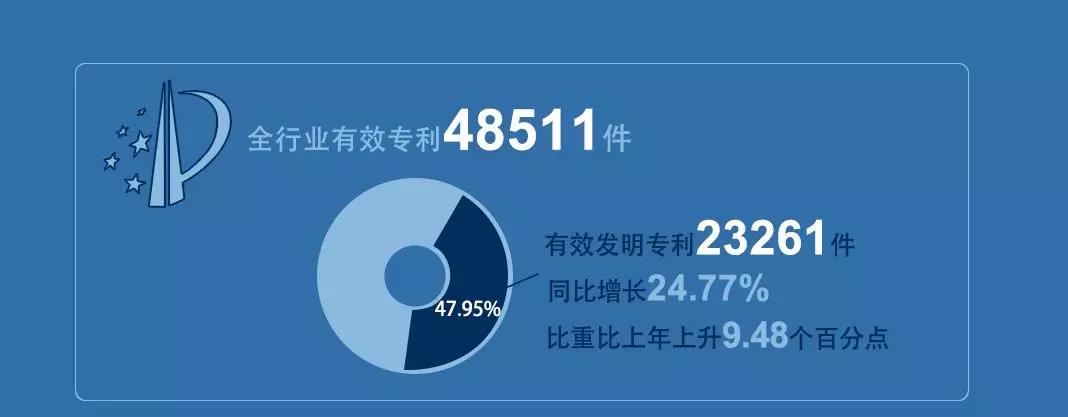 全年检验检测行业投入研究与试验发展(R&D)经费支出总计 158.38 亿元。参与科研项目总计31627 项。2018年,全行业拥有有效专利48511件,其中有效发明专利23261 件,同比增长24.77%。有效发明专利量占有效专利总数比重为47.95%,比2017 年上升9.48个百分点。
