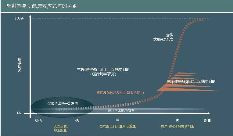 鉴于统计学的和其他的不确定性,在低或极低水平辐射照射后,如环境辐射照射和职业辐射照射情况下,延迟健康效应发生率与辐照照射的关系还没有得到确认。尽管如此,还不能排除这种效应的存在。