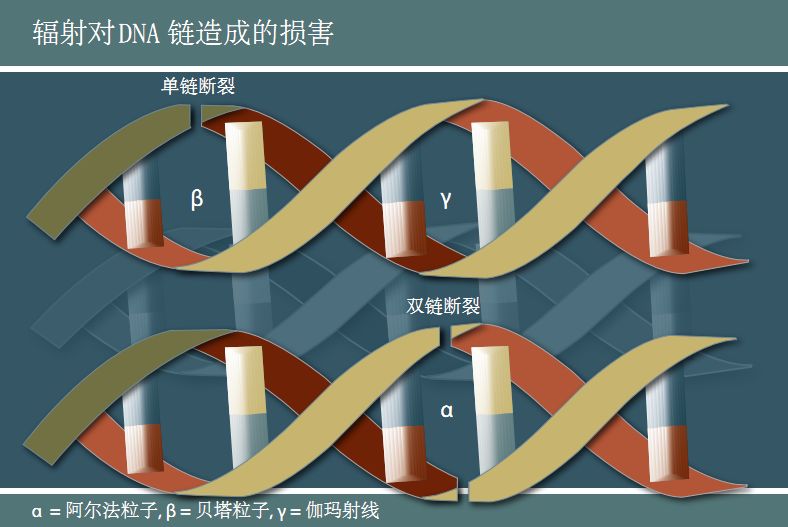 自从发现辐射以来,一个多世纪的辐射研究已经产生了大量的关于辐射如何影响健康的生物机制的资料。我们已经了解辐射可以产生细胞水平的效应,通常由于对染色体中脱氧核糖核酸(DNA)链的直接操作而导致细胞的死亡和改变。如果损伤或死亡的细胞数目足够的大,则可引起器官功能障碍,甚至死亡。此外,还可能发生不至使细胞死亡的其他DNA损伤。这种损伤通常是可以完全修复的,如果不能修复,那么引起的改变(称为细胞畸变)将反映在后来的细胞分裂中,最终可能致癌。如果被改变的细胞将遗传信息传递给后代,则可能发生遗传疾病。关于生物机制和遗传效应的信息往往是通过实验室实验获取的。