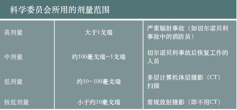 科学委员会评估辐射照射对人类和环境的影响,试图尽可能可靠地阐明什么样的效应是由什么水平的辐射照射引起的。在上期《什么是辐射》文中已经提到,辐射照射的程度随辐射类型、照射时间长短和物质中沉积能量的不同而不同。为了进行评估,科学委员会目前用术语低剂量来表示低于100毫戈瑞但大于10毫戈瑞之间的水平,用术语极低剂量指低于10毫戈瑞水平。