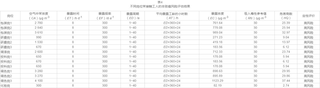 2.4 应用EPA模型评估不同岗位的致癌风险