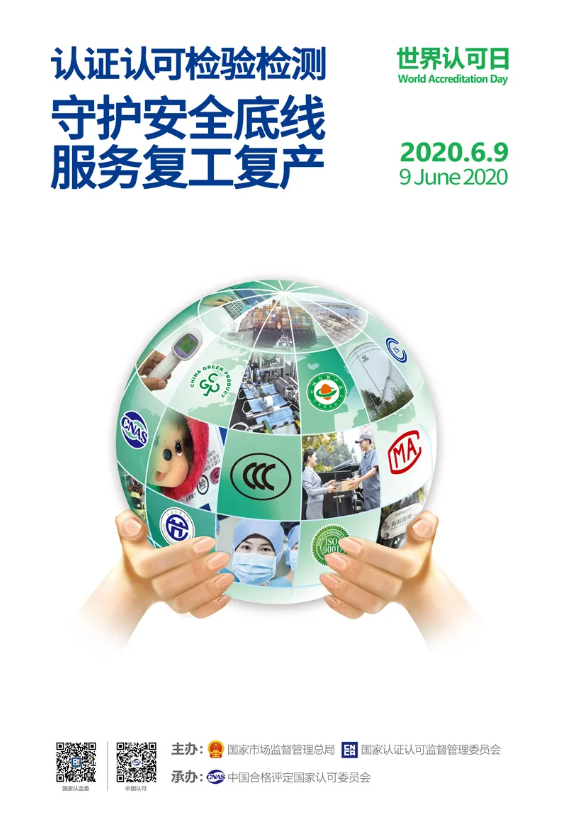第十三个世界认可日到来。2020年世界认可日海报正式发布,主题是“认证认可检验检测:守护安全底线,服务复工复产”。