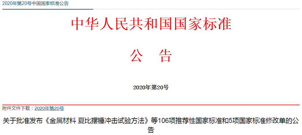 近日,市场监管总局(国家标准委)批准发布《金属材料 夏比摆锤冲击试验方法》等106项推荐性国家标准和5项国家标准修改单,涉及农业农村、绿色环保、公共安全、远程教育等诸多领域。