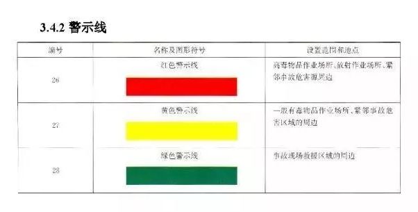 ⑵在高毒物品作业场所,设置红色警示线。在一般有毒物品作业场所,设置黄色警示线。警示线设在使用有毒作业场所外缘不少于30cm处。