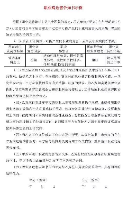 主要内容为:可能产生的职业病危害及其后果、职业病防护措施和待遇(岗位津贴、工伤保险等)。