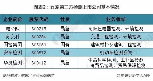 其中,有五家龙头企业已经登录国内资本市场,基本情况如下图所示。为进一步了解第三方检测行业的发展情况,前瞻产业研究院对这五家第三方检测上市公司2017年报进行深入解读。