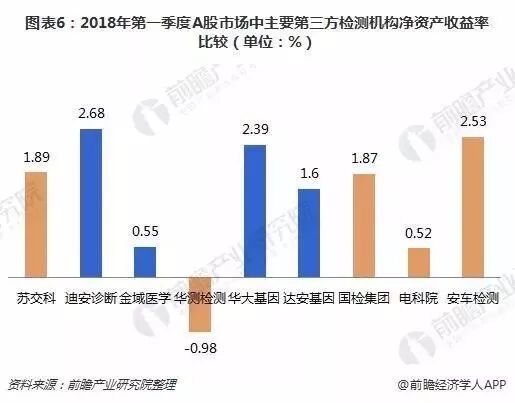 2018年第一季度,迪安诊断的净资产收益率相对最高,安车检测、华大基因的净资产收益率也都超过了2.3%,自有资本获得收益效率最高。