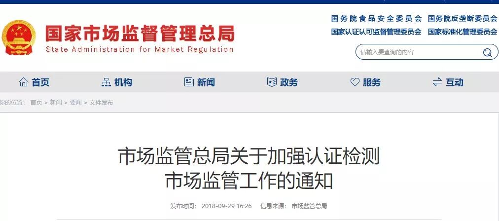 市场监管总局关于加强认证检测市场监管工作的通知