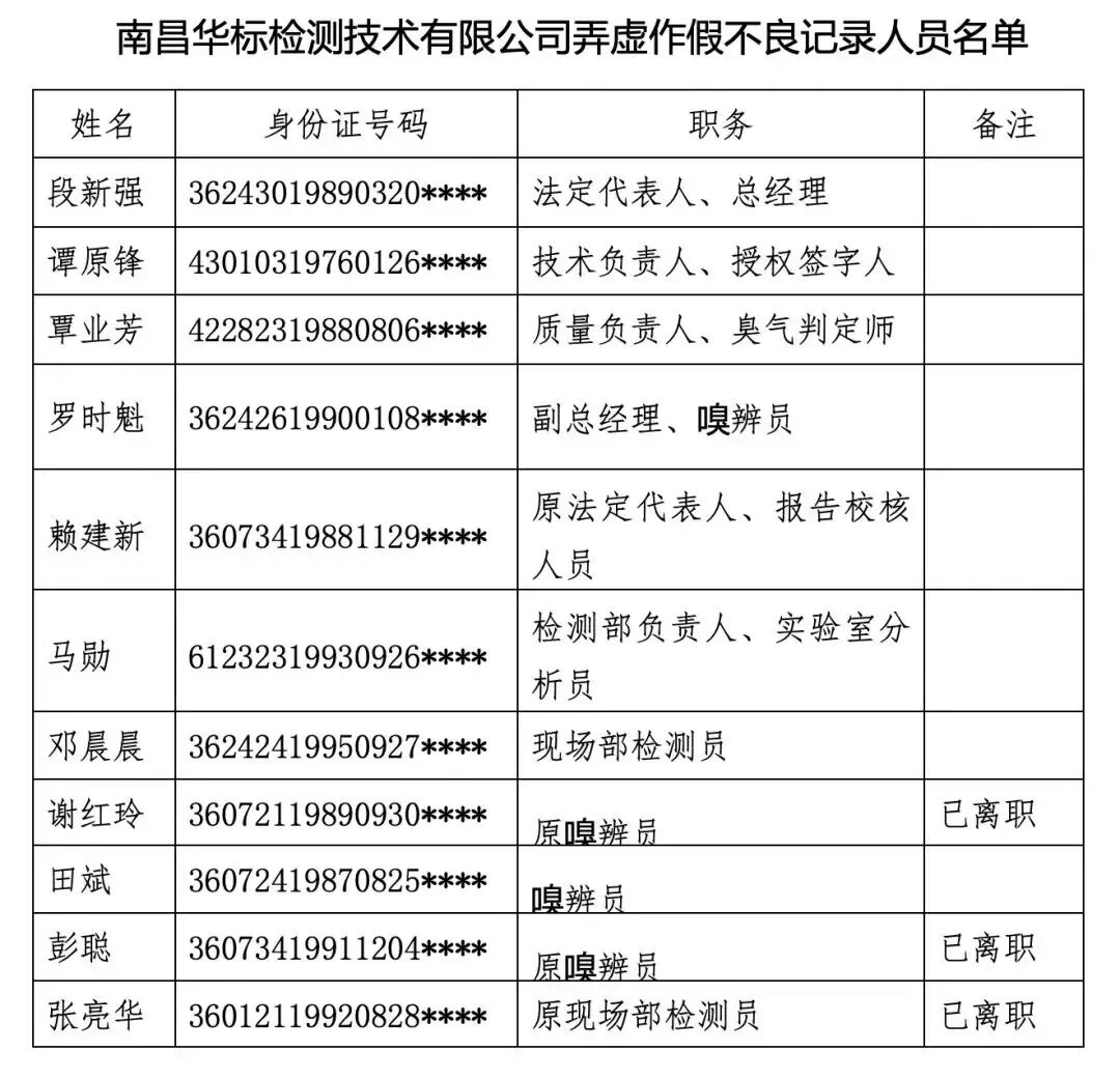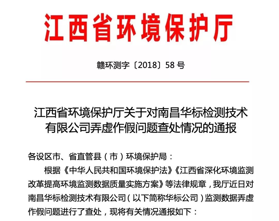 (二)根据《江西省深化环境监测改革提高环境监测数据质量实施方案》《江西省人民政府办公厅关于社会信用体系建设的实施意见》《江西省人民政府办公厅关于印发江西省公共信用信息归集和使用暂行办法的通知》要求,我厅将华标公司和法定代表人、授权签字人、技术负责人、质量负责人、检测部负责人、相关采样及分析审核人员列入不良记录名单(见附件),将其弄虚作假、伪造监测数据的行为上报给江西省公共信用信息平台,实现数据共享和联合惩诫;