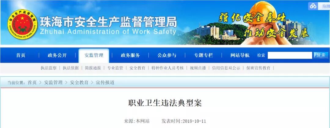 违法事实:2018年8月2日上午,珠海市高新区安全生产监督管理局执法人员按照年度执法计划实施对该区某公司进行执法检查,通过现场检查和调查询问,发现该公司未按照规定及时、如实向安全生产监督管理部门申报职业病危害因素项目和未在醒目位置设置职业病危害公告栏的违法事实。