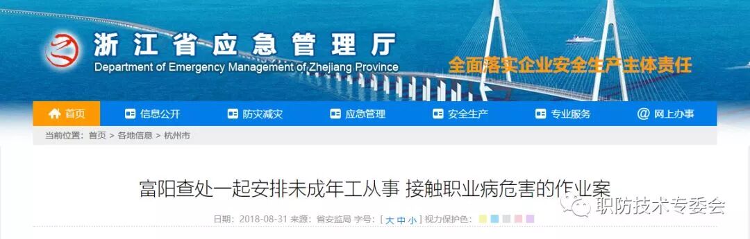 调查查明,该公司安排未成年工从事接触职业病危害的作业行为违反了《中华人民共和国职业病防治法》第三十八条“用人单位不得安排未成年工从事接触职业病危害的作业;不得安排孕期、哺乳期的女职工从事对本人和胎儿、婴儿有危害的作业”的规定,富阳区安监局依据《中华人民共和国职业病防治法》第七十五条第七项的规定对该企业做出罚款五万元的行政处罚。