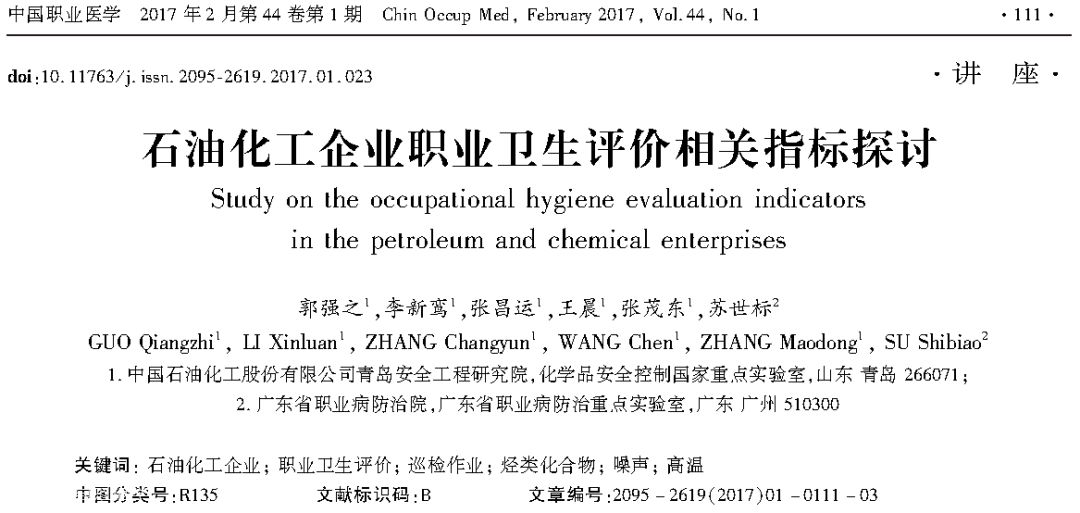 摘自 | 《石油化工企业职业卫生评价相关指标探讨》